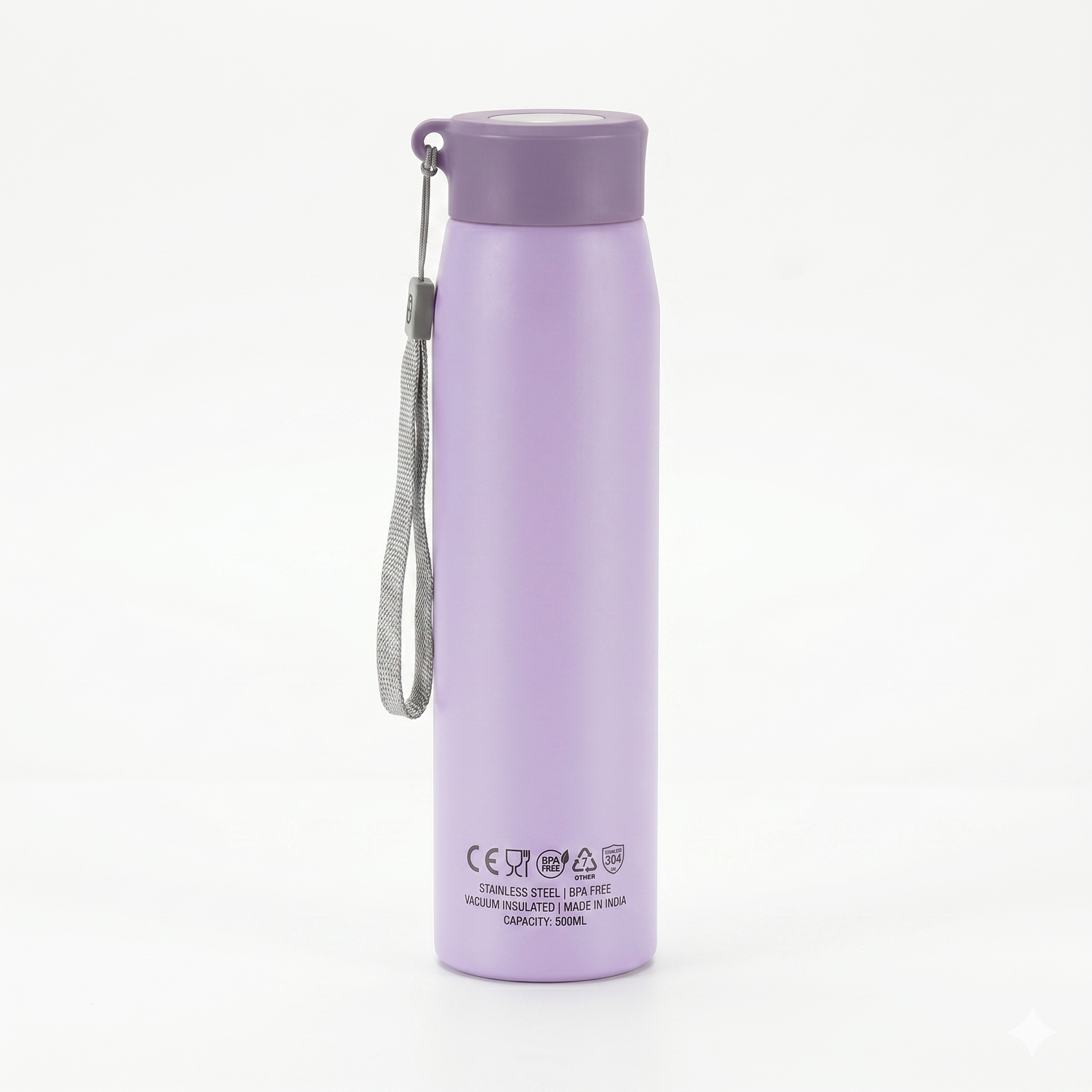 matte lavender finish isn’t just about looks; it provides a non-slip grip and resists fingerprints, keeping your bottle looking pristine throughout the day.