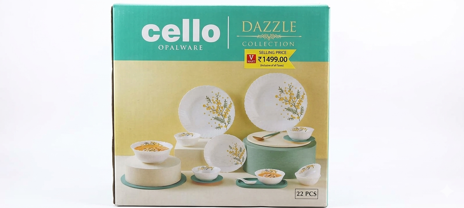 โœจ Add style and elegance to your dining table with the Cello Dazzle Opalware Dinner Set. Designed with a beautiful floral pattern and durable opalware material, perfect for everyday meals and special occasions.