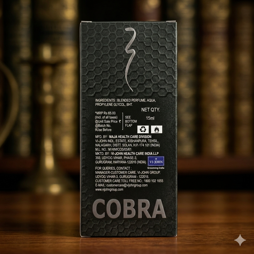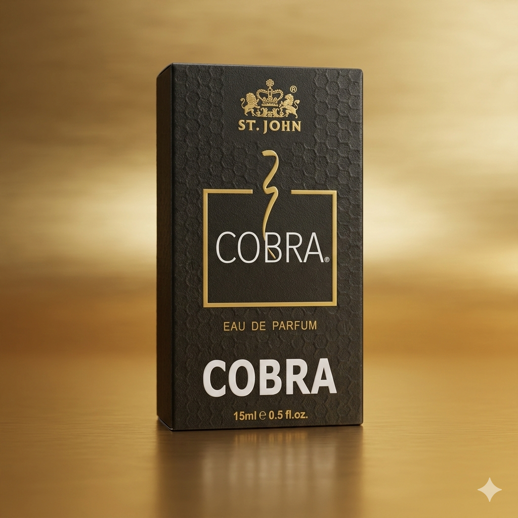 Cobra by St. John is a premium fragrance that embodies strength and elegance. Encased in a sleek, honeycomb-textured black box with gold accents, this Eau De Parfum is crafted by the Maja Health Care Division. The formula features a concentrated blend of aromatic compounds, including Aqua and Propylene Glycol, ensuring a smooth application and a fragrance that lingers. With its compact 15ml (0.5 fl.oz.) volume, it is the perfect companion for the modern individual who values luxury and portability.