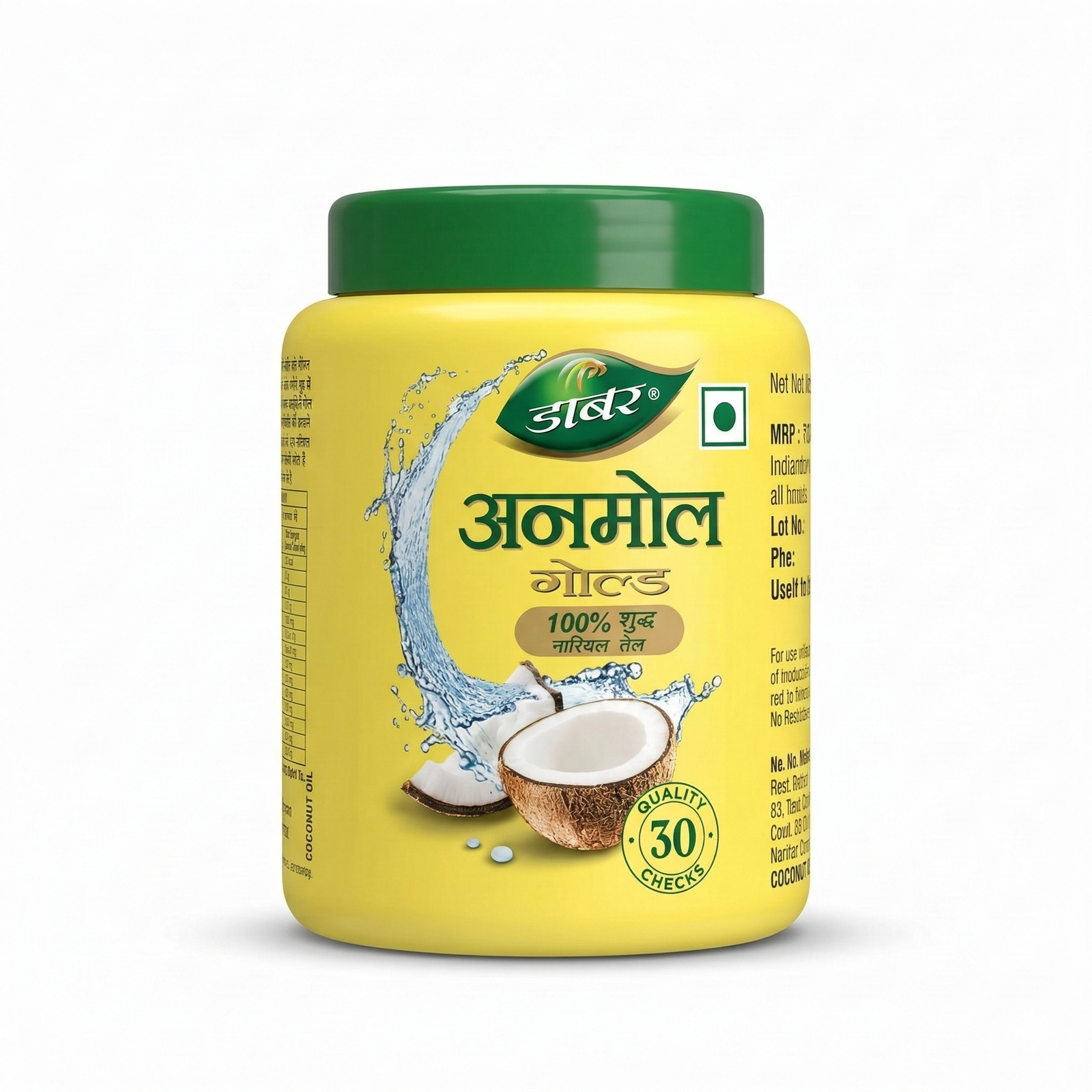 Experience the gold standard of purity with Dabur Anmol Gold Coconut Oil. Trusted by millions, this versatile oil is designed to be a staple in your kitchen and your beauty regimen.