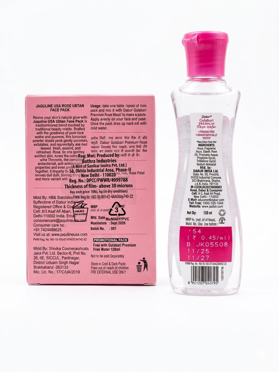 Jaquline USA Rose Ubtan Face Pack (25g): A luxury powder-based pack inspired by traditional ubtan recipes. It features a blend of rose petals, turmeric, and sandalwood to gently exfoliate and rejuvenate dull skin.