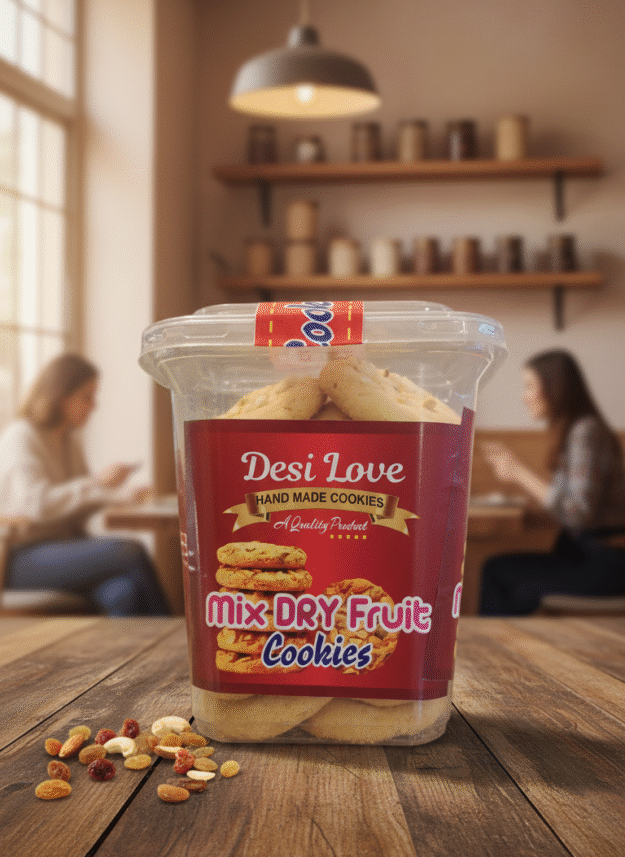 Embark on a delightful journey with Desi Love Mix Dry Fruit Cookies. 💖🍪 These exceptional cookies are a celebration of rich textures and flavors, inspired by traditional Indian hospitality and a love for wholesome ingredients. Each cookie is a masterpiece, generously studded with a vibrant assortment of premium dried fruits and crunchy nuts, including raisins, cranberries, almonds, and cashews.