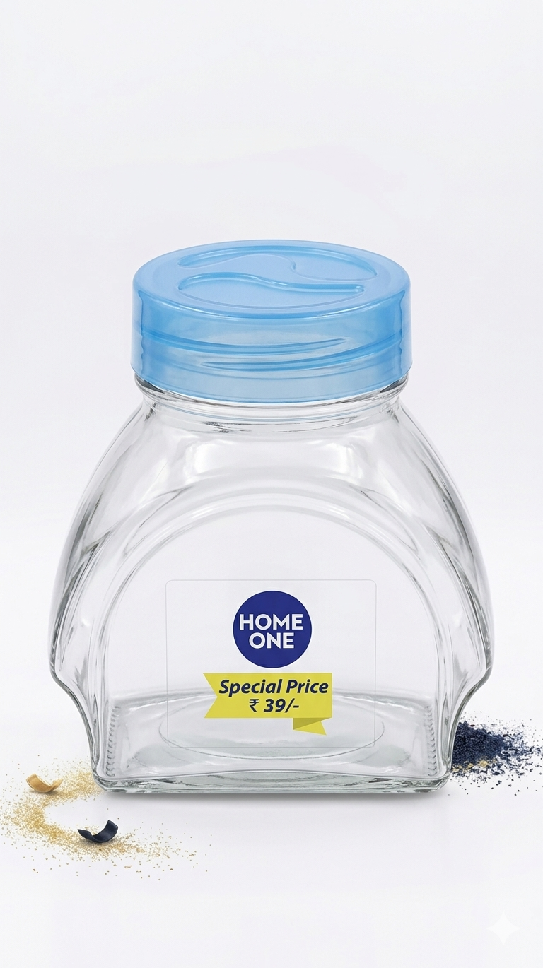 Upgrade your kitchen aesthetics with this crystal-clear, square-shaped glass jar. Featuring a leak-proof blue lid and a compact design, it’s ideal for spices, pulses, or craft supplies. Durable, stylish, and budget-friendly!