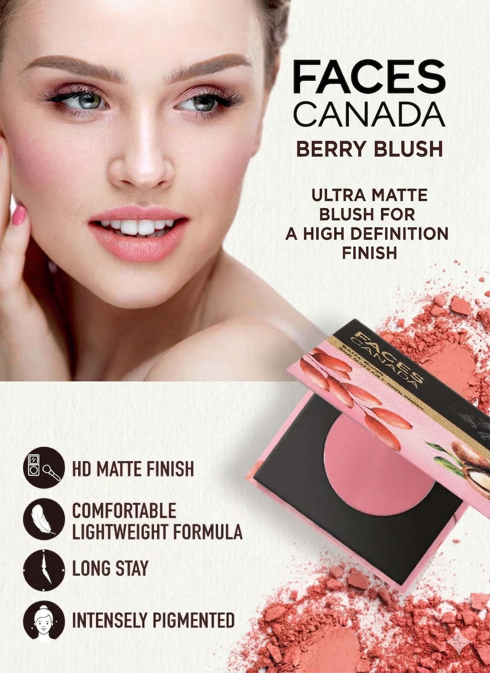 Faces Canada Berry Blush is designed for the modern individual who wants high-impact pigment without the heavy feel. Its ultra-fine, velvety powder melts into the skin, ensuring you never look “cakey”—just naturally radiant.
