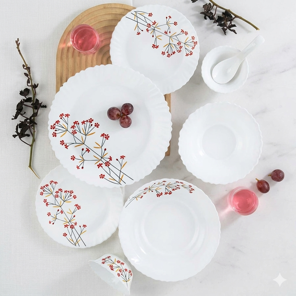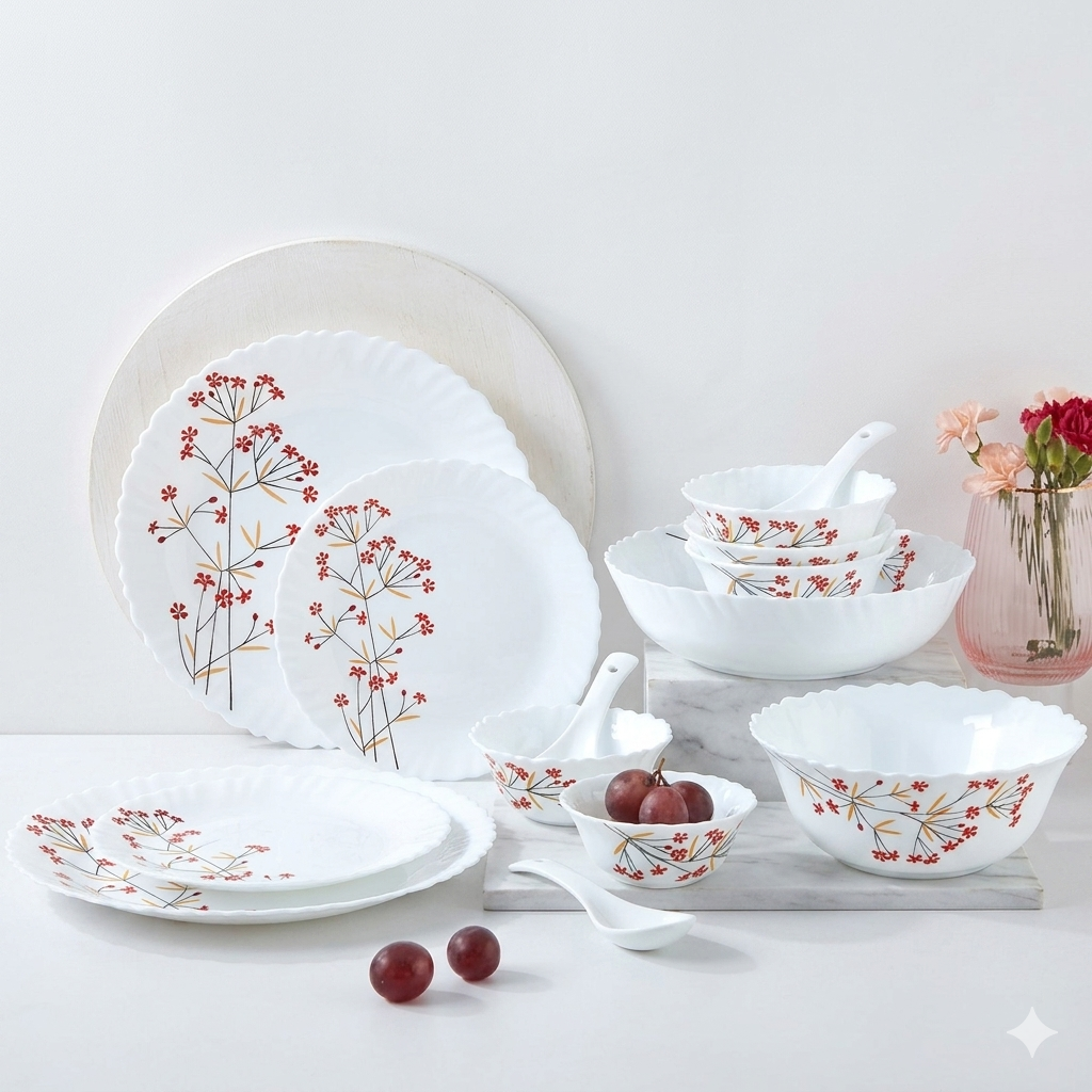 Transform your dining table into a masterpiece with our Floral Elegance Opalware Collection. Designed for those who appreciate the perfect blend of traditional charm and modern durability, this set is a must-have for any contemporary kitchen.