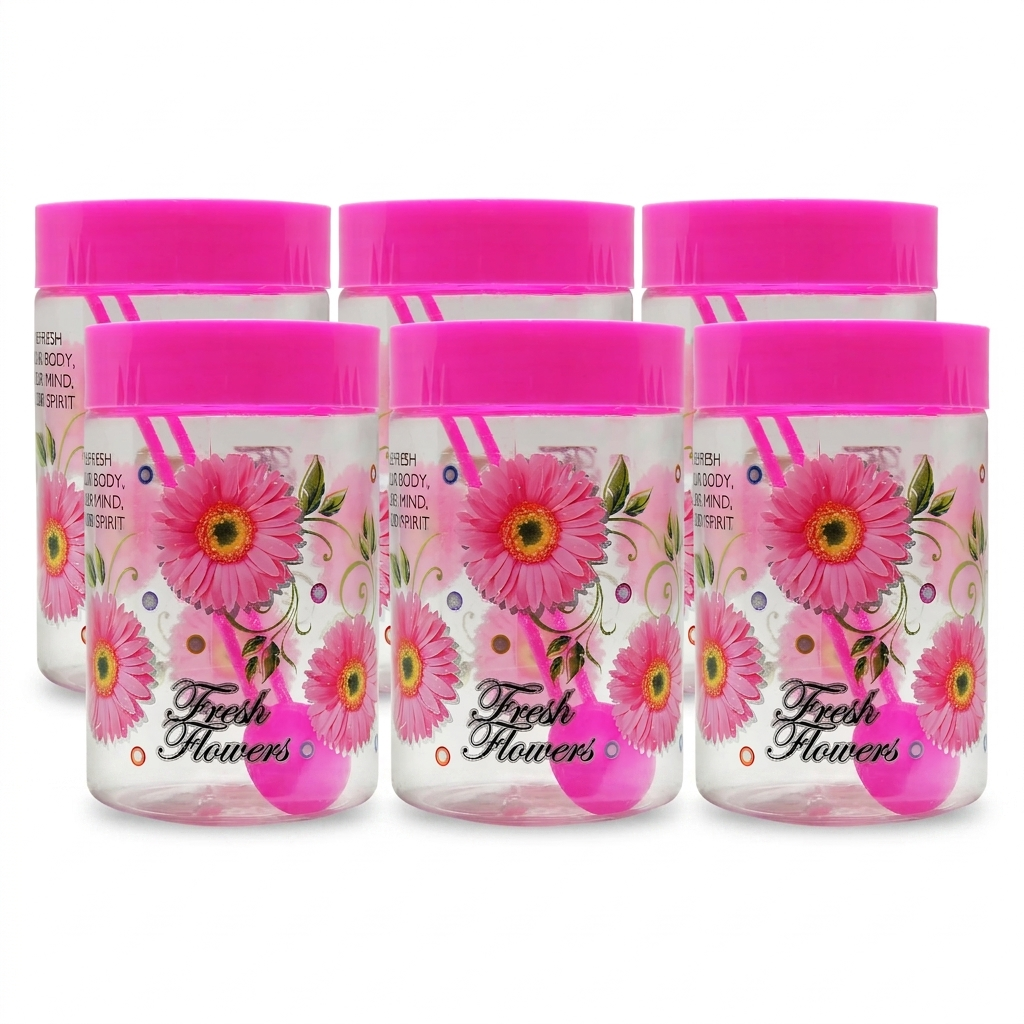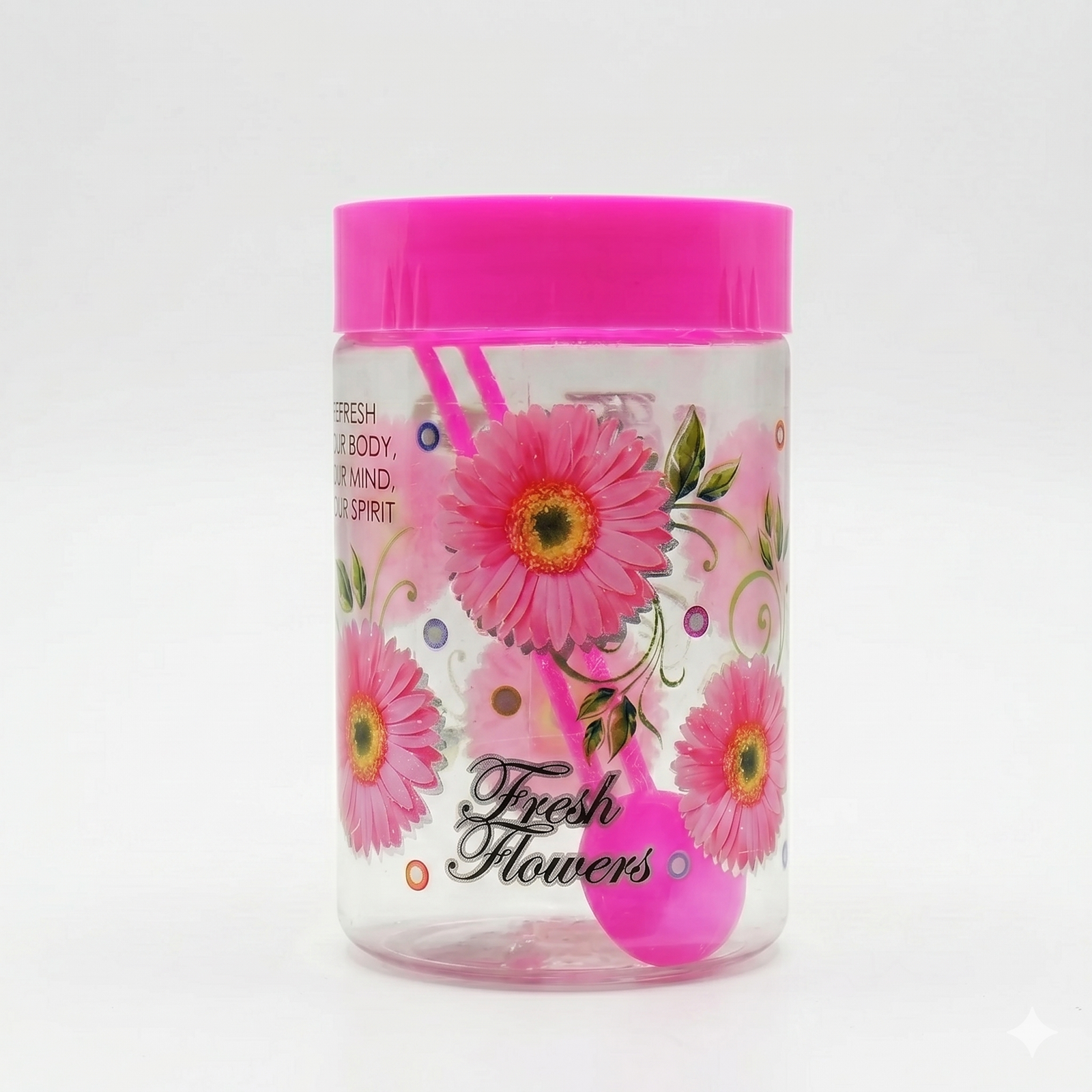 Fresh Flowers Storage Collection. This set of six high-quality containers blends aesthetic appeal with everyday utility. Each jar is adorned with a stunning pink gerbera daisy motif and the inspiring “Refresh Your Body, Mind, and Spirit” quote, making them more than just storage—they are a lifestyle statement.