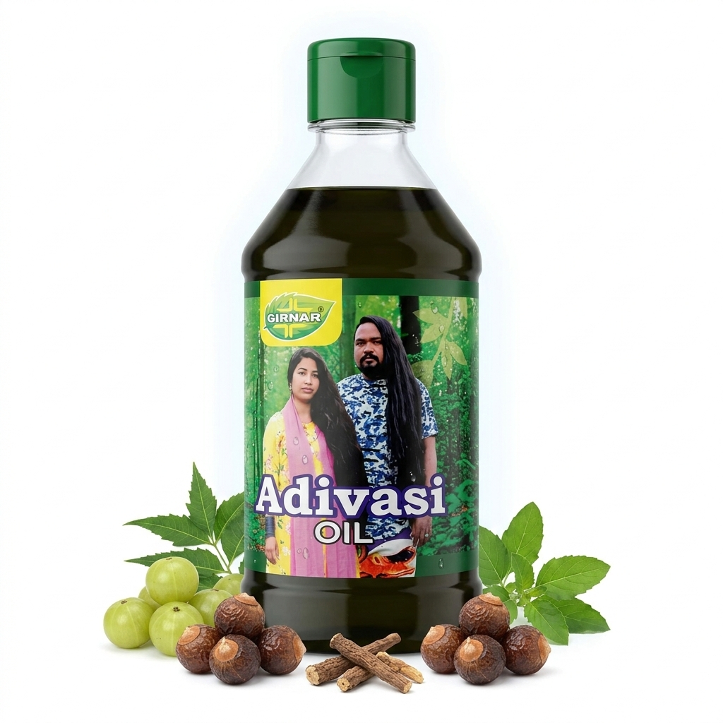 Girnar Adivasi Oil. This authentic Ayurvedic formula is designed to transform your hair care routine using natural, time-tested ingredients.