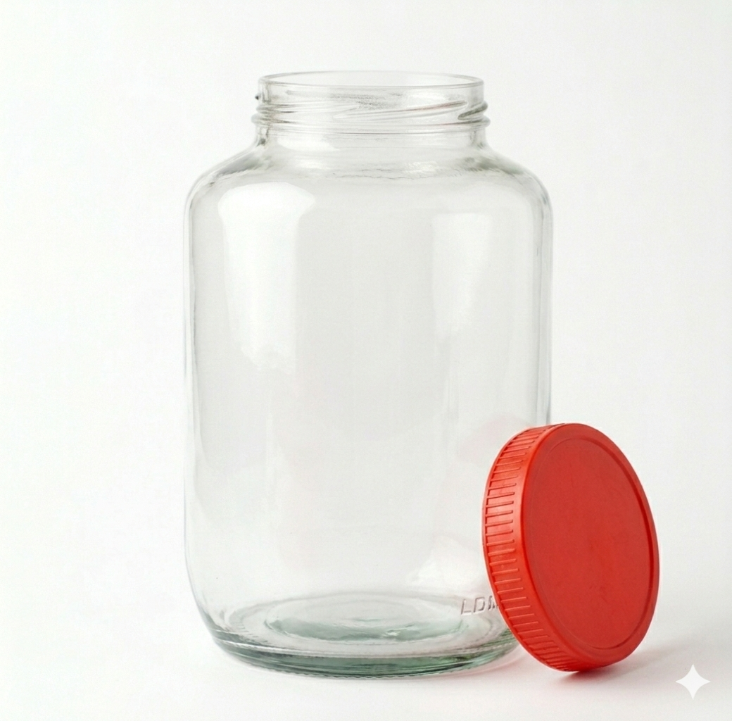 Glass Utility Jar. Designed for both beauty and practicality, this jar offers a crystal-clear view of your contents, making it easy to monitor your stock at a glance. The wide-mouth design ensures effortless filling and cleaning, while the secure, ribbed red lid provide a pop of color and a dependable seal to keep your items protected. Whether you are storing dry goods, spices, or household essentials, this versatile container is built to last and looks great on any countertop or shelf.