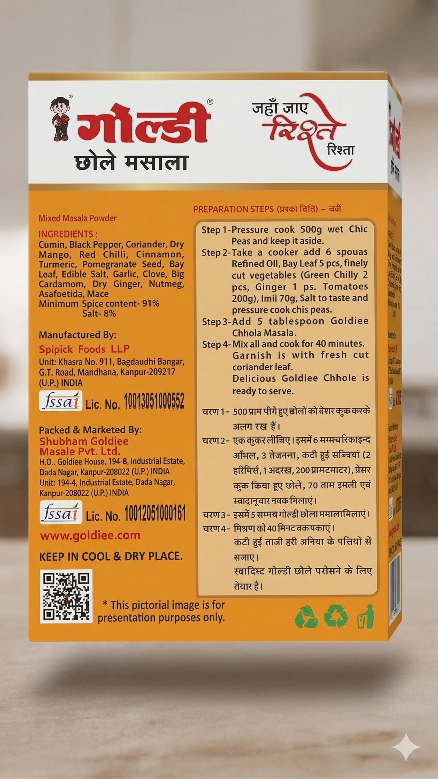 • 📋 Trusted Quality: Clear manufacturing details (from Spipick Foods LLP/Shubham Goldiee Masale) and FSSAI licensing guarantee product reliability.