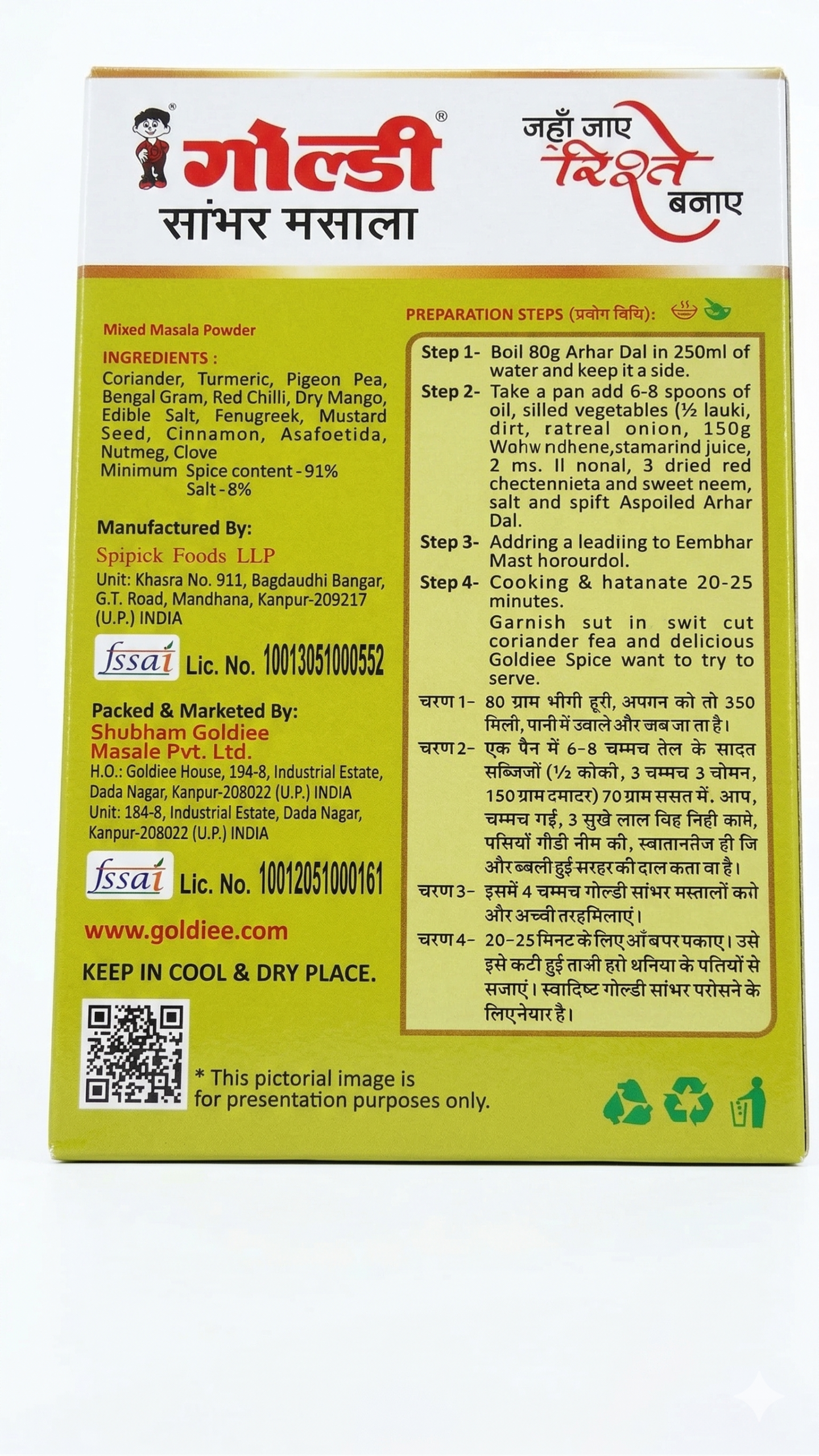 ✅ Uncompromising Quality: Every pack of Goldiee Masala undergoes rigorous quality checks. We ensure that only the finest, standard-compliant ingredients reach your kitchen, free from artificial fillers.