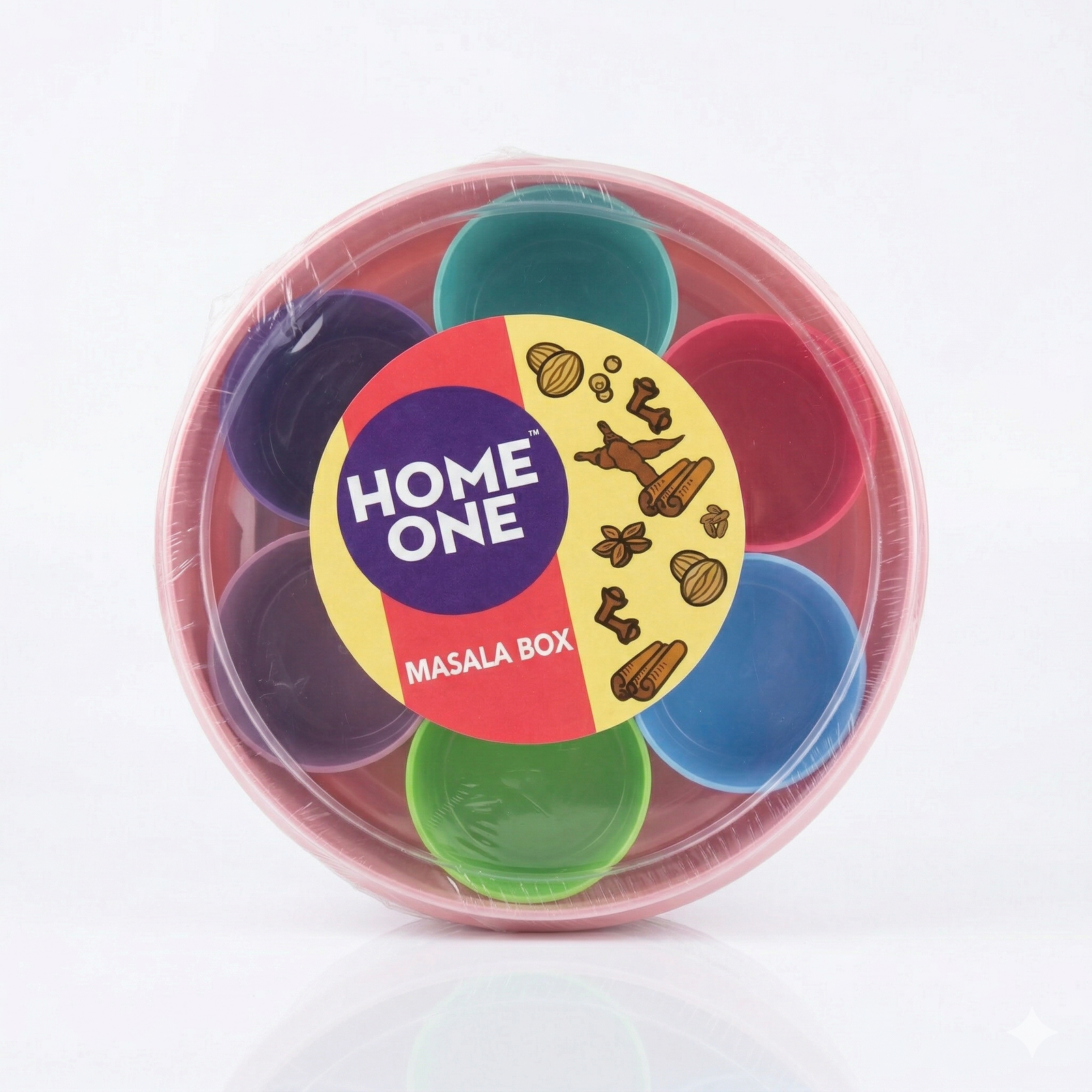 🎨 Color-Coded Spice Organization! This HOME ONE Masala Box features a clear lid, 7 vibrantly colored removable cups, and is shrink-wrapped for freshness. The compact, round design saves space in your kitchen.