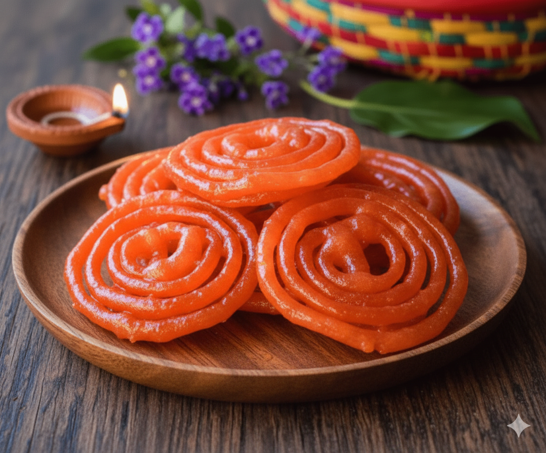 💧 A Syrup Bath: Immediately after frying, the hot coils are plunged into a warm, cardamom- and sometimes saffron-flavored sugar syrup, which they quickly soak up, transforming them into juicy, sweet delights.