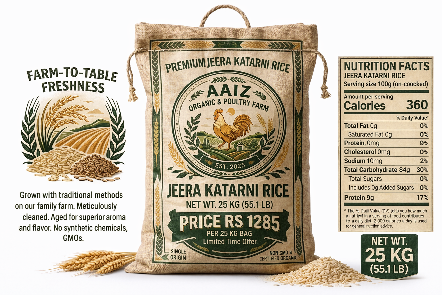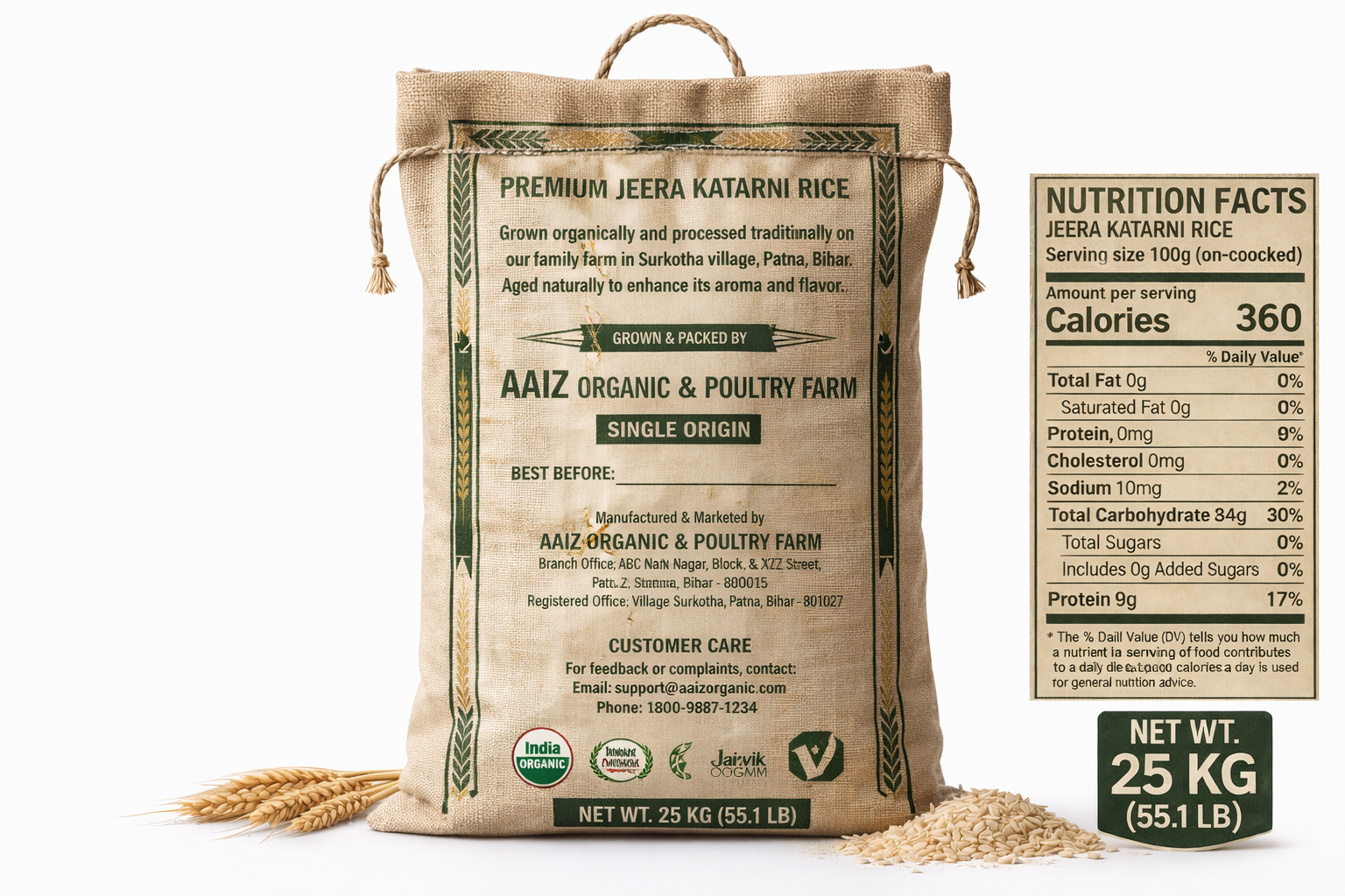 Jeera Katarni Rice. This premium variety is cultivated using time-tested farming practices and carefully processed to maintain its natural purity, aroma, and nutritional value.