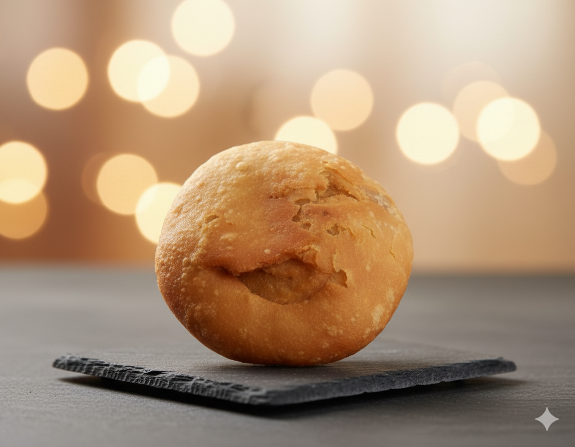 Tucked inside this golden shell is a burst of complex, aromatic flavor. While many varieties exist (like onion or pea), the most traditional Kachori is stuffed with a savory and tangy filling ๐ŸŒถ๏ธ made from coarsely ground lentils, typically moong dal (yellow lentils) or urad dal. This lentil mixture is slow-roasted and cooked down with a potent, fragrant blend of spices. Key flavors always include earthy cumin, sweet-smelling fennel seeds (saunf), a sharp kick from asafoetida (hing), coriander, and a tangy punch from dry mango powder (amchur) or pomegranate seeds.