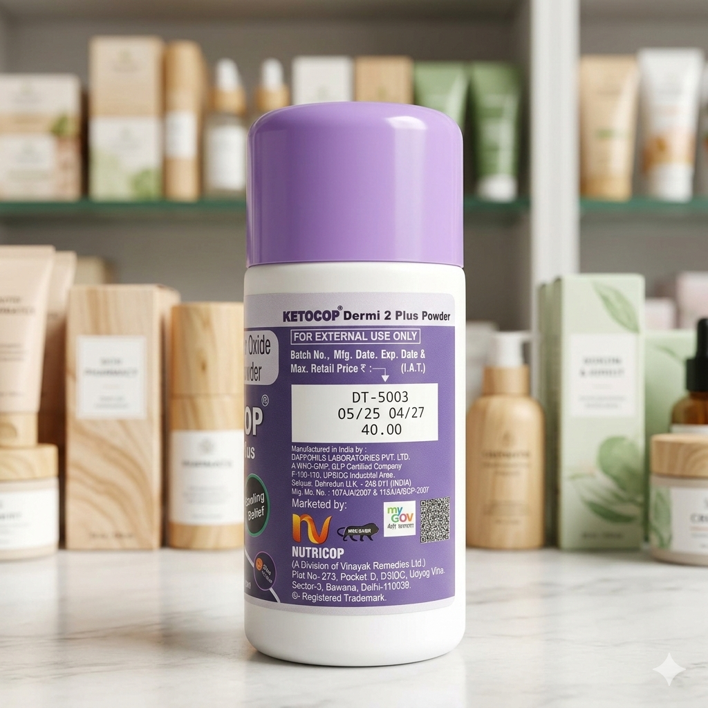 Ketocop Dermi 2 Plus is a multi-action medicated talc engineered to defend your skin against irritation while keeping it fresh and dry.