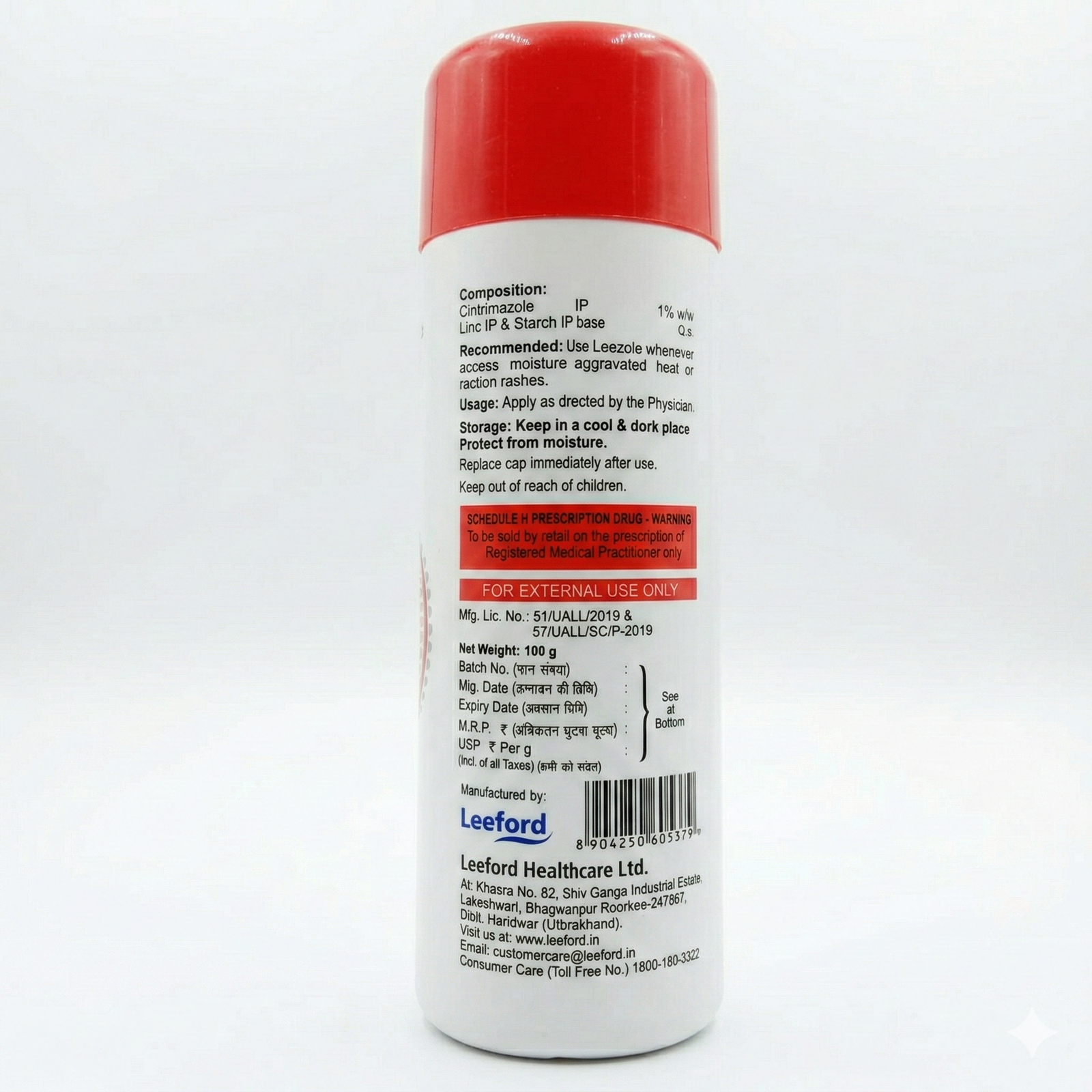 By absorbing excess sweat and targeting the root cause of fungal growth, Leezole ensures your skin remains healthy even in humid conditions. It is ideal for use on areas prone to moisture, such as underarms, skin folds, and feet.