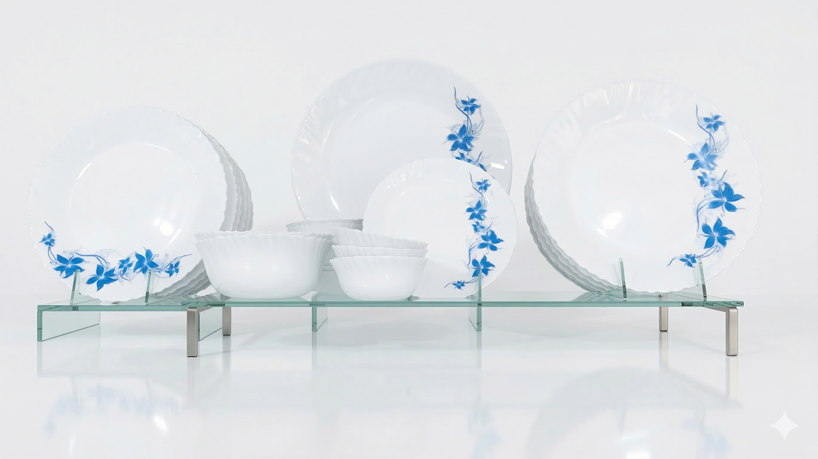 Elevate your culinary presentation with the Lumina 26-Piece Dinnerware Collection. Crafted from high-quality, tempered opal glass, this set offers the sophisticated look of fine china with the rugged resilience needed for daily use. The “Blue Blossom” pattern brings a touch of nature-inspired serenity to your kitchen, while the high-gloss finish provides a premium feel.