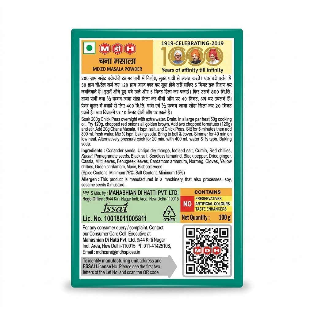 Quality Assured: ✅ Produced by Mahashian Di Hatti (MDH) under strict quality standards to ensure freshness and potency.