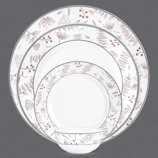 • 🌿 Elegant Botanical Design: Sophisticated lavender leaf and berry print with a sleek silver-grey rim.