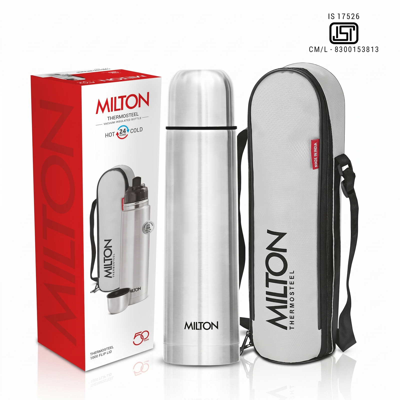 Experience unmatched temperature retention and superior build quality with this classic Milton Thermosteel vacuum-insulated bottle. Designed to keep your drinks hot or cold for a full 24 hours, it’s the ideal choice for office, gym, travel, school, or any outdoor activity. Built with safety and durability in mind, this flask and pouch combo is a smart and stylish solution for your hydration needs.