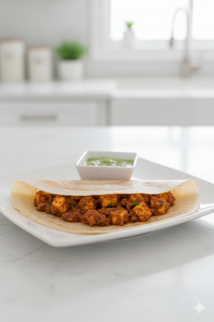 A modern and incredibly popular twist on a South Indian classic, the Paneer Dosa is a culinary delight that brings together the best of two regions! 🇮🇳
