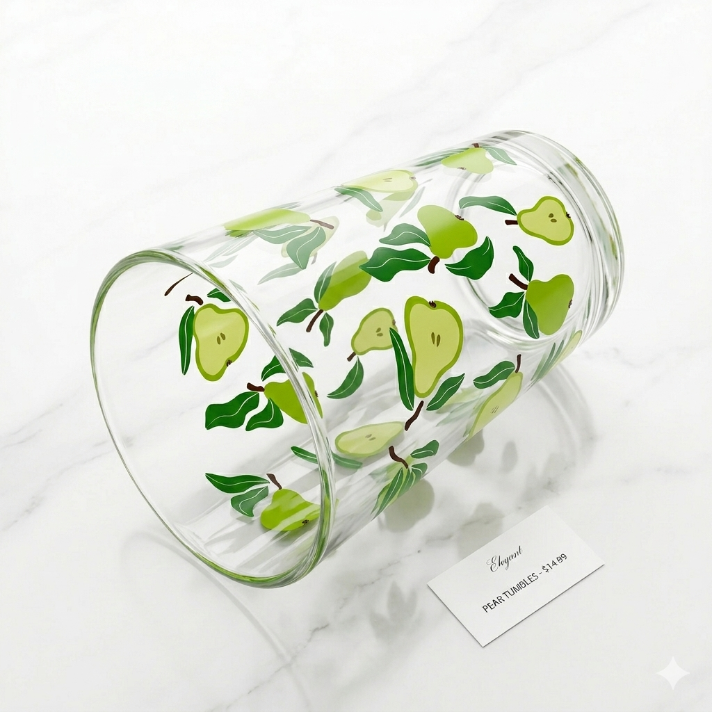 Add a splash of personality to your tabletop with our Pear Print Highball Glass. This tall tumbler combines a classic silhouette with a whimsical, hand-painted style pear and leaf pattern that wraps beautifully around the glass. Crafted from high-transparency soda-lime glass, it provides a clear view of your favorite juices, iced teas, or sparkling water. The weighted base ensures stability, while the smooth rim offers a comfortable sipping experience. Whether you’re hosting a summer brunch or enjoying a quiet afternoon drink, this glass brings a fresh, organic vibe to every occasion.