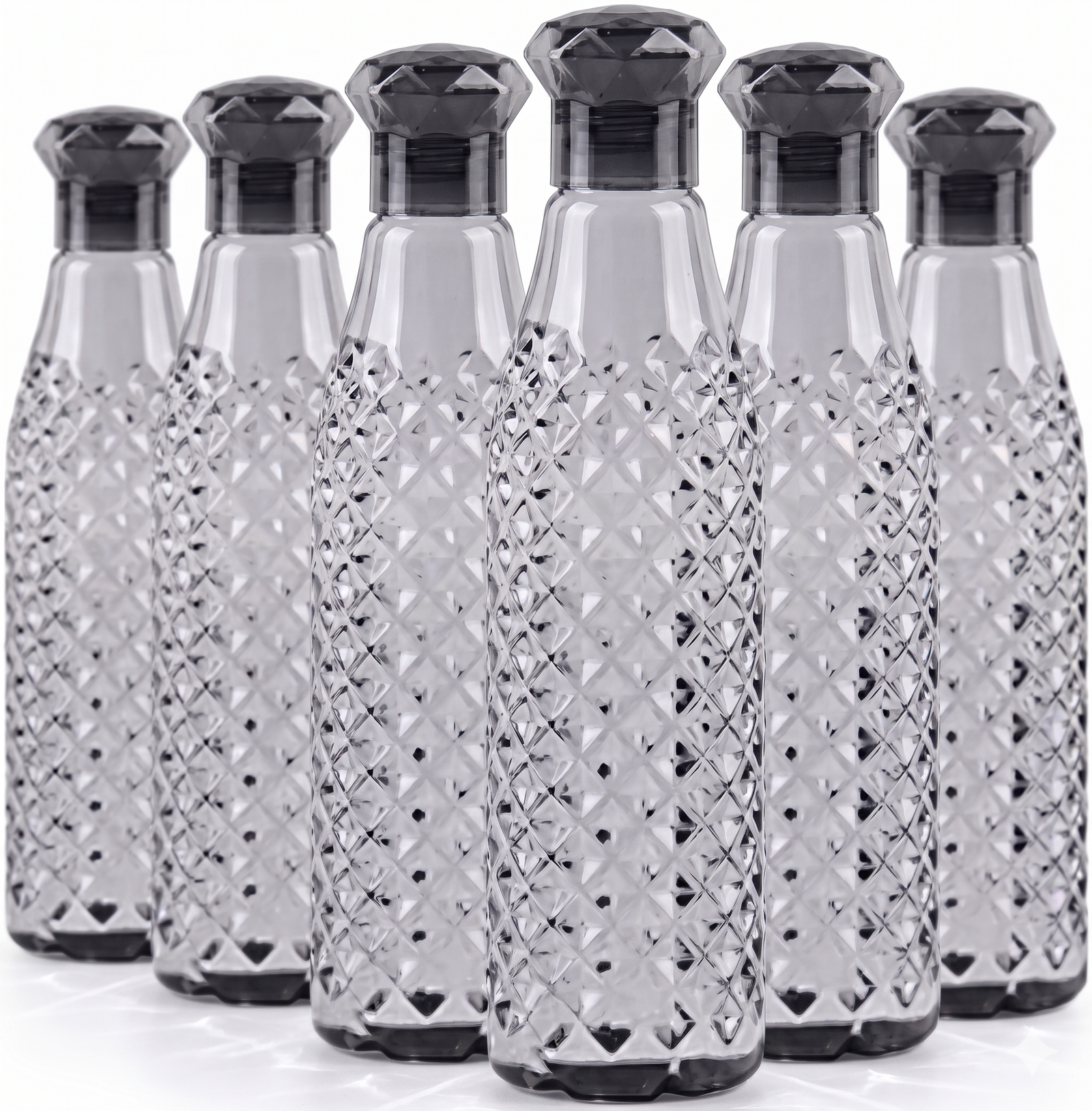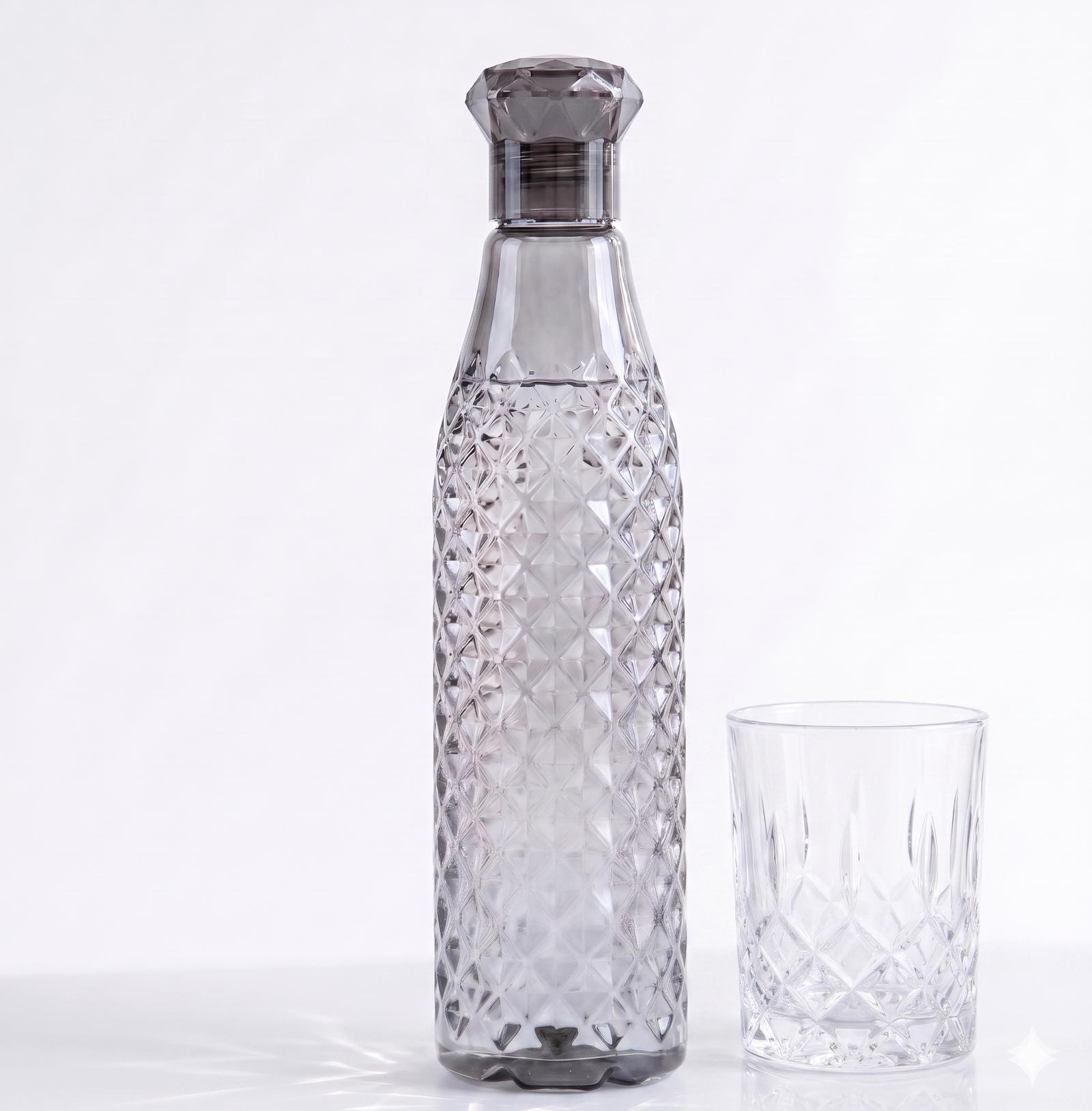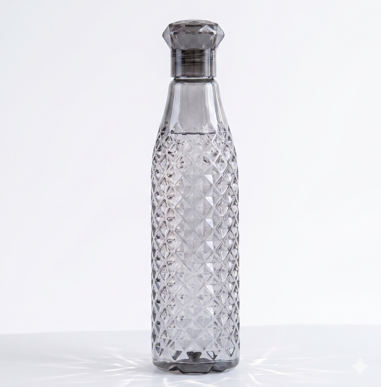 Lijiye pesh hai ek aisi water bottle jo sirf utility nahi balki ek style statement bhi hai! Ye Designer Grey Diamond-Pattern Bottle aapke kitchen aur dining table ki shobha badhane ke liye design ki gayi hai. Iska ergonomical design ise pakadne mein aasaan banata hai aur transparent body aapko hydration level check karne mein madad karti hai.