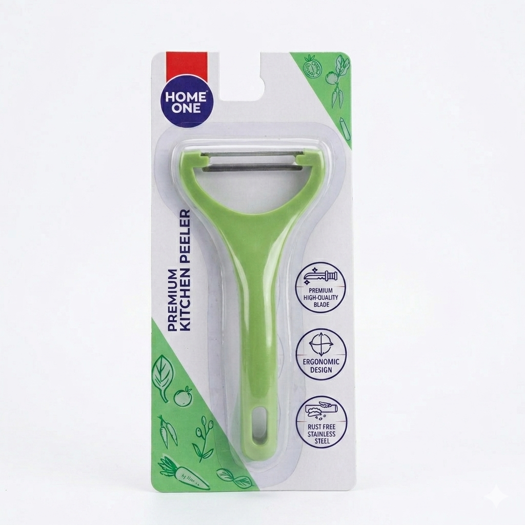 Add a splash of vibrant functionality to your kitchen with the Home One Premium Kitchen Peeler. This brightly colored green peeler is designed to streamline your food preparation, saving you time and effort. The horizontal ‘Y’ shape provides natural leverage, allowing the ultra-sharp stainless steel swivel blade to effortlessly peel potato skins, cucumber peels, apples, and more. Crafted with a non-slip, soft-touch handle, it offers maximum comfort and control, even when your hands are wet. Durable, rust-free, and easy to clean, this peeler is a reliable essential for every home cook.