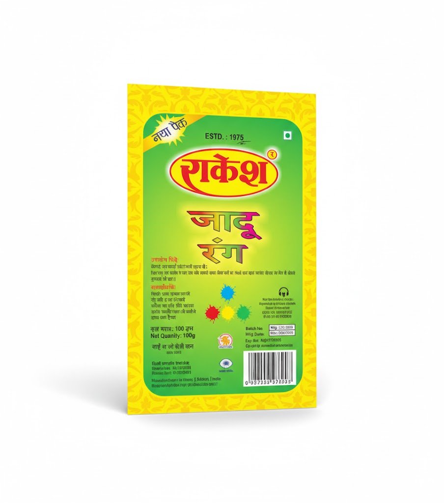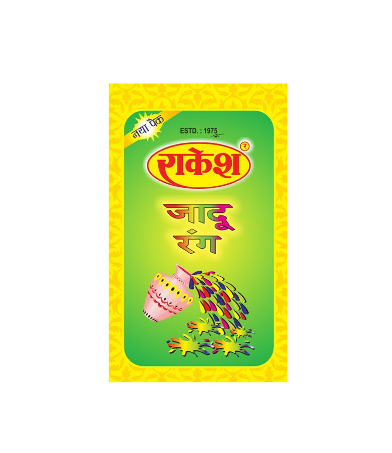 Rakesh Jadu Rang is presented in an attractive, bright green and yellow package, symbolizing energy and joy.