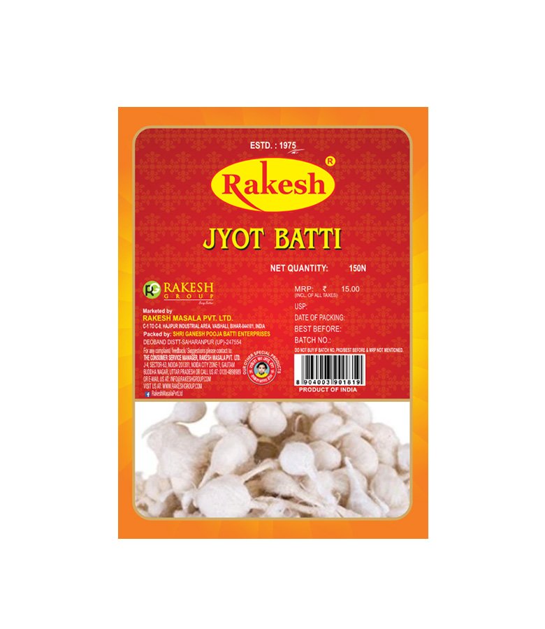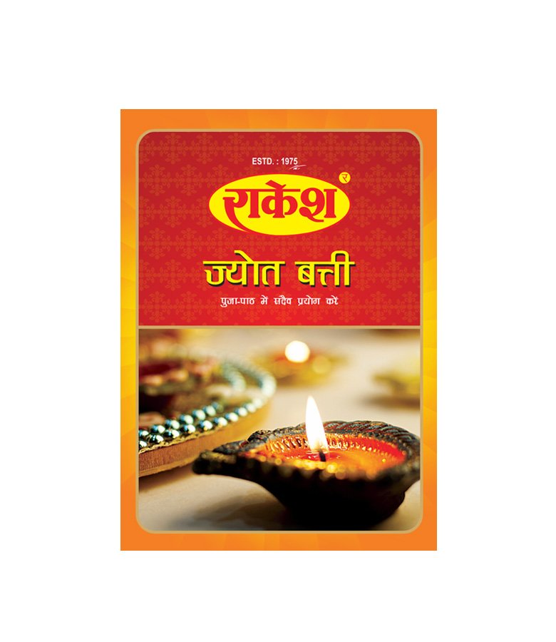Rakesh Jyot Batti (Lamp Wicks) are a fundamental item for every Hindu ritual and daily worship. Under the trusted Rakesh brand, established in 1975, these wicks are crafted to provide a reliable and consistent flame, symbolizing the divine light. The packaging clearly features a lit diya (earthen lamp), illustrating its traditional use.