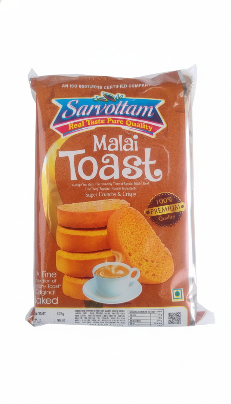 Sarvottam Malai Toast. Each piece is a masterclass in baking, offering a 100% premium quality experience that combines tradition with a satisfying crunch.