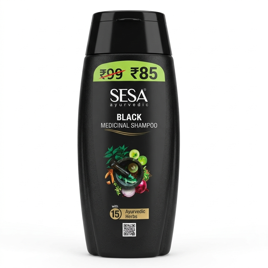 Sesa Ayurvedic Black Medicinal Shampoo. Crafted using authentic Ayurvedic principles, this shampoo goes beyond simple cleansing. It treats your hair from root to tip, utilizing a rich “Black” formula that focuses on restoring hair health and preventing common scalp issues.