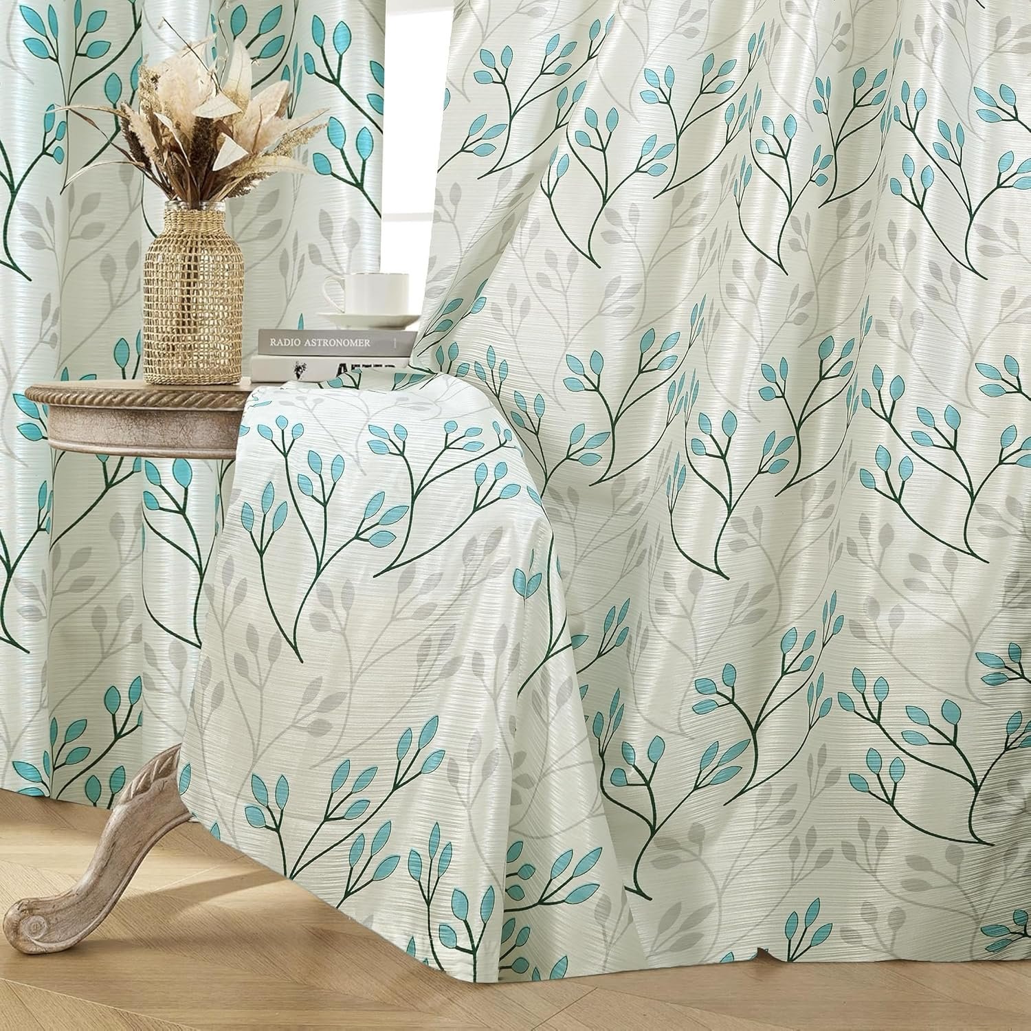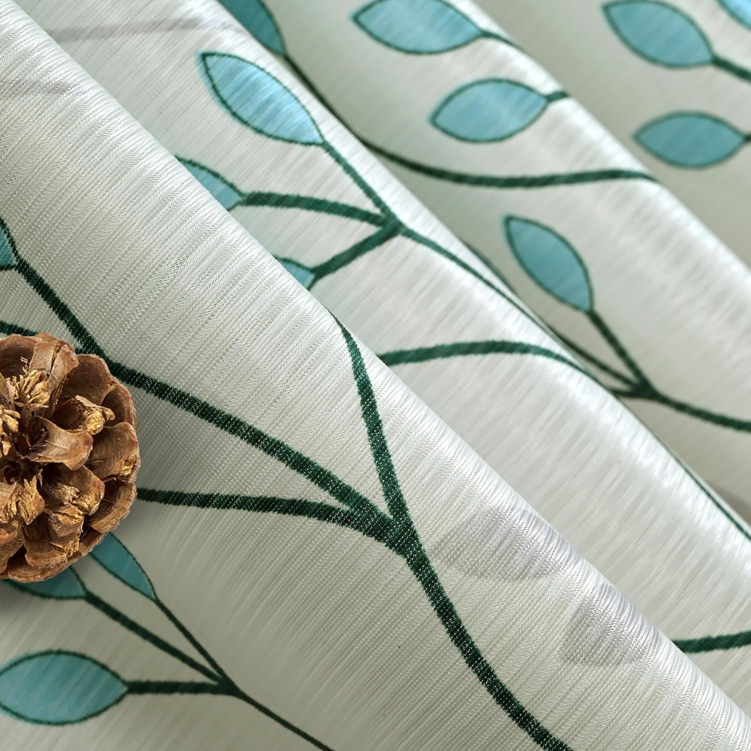 Experience the Serenity of Nature: Botanical Breeze Teal Leaf Curtains