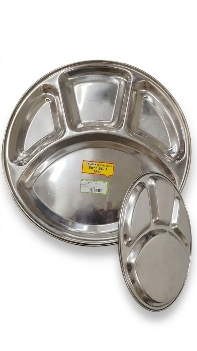 Make your mealtime more convenient with this premium Stainless Steel Compartment Plate (Dinner Thali). Crafted from high-quality stainless steel, this plate is strong, rust-resistant, and perfect for daily use at home, hostels, schools, or restaurants.