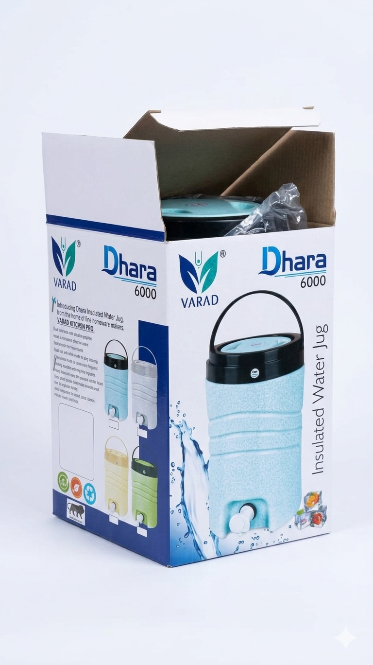 Stay refreshed all day with the VARAD Dhara 6000 Insulated Water Jug. Designed for convenience and durability, this jug keeps your beverages cool for longer hours. Perfect for homes, offices, picnics, and outdoor activities.