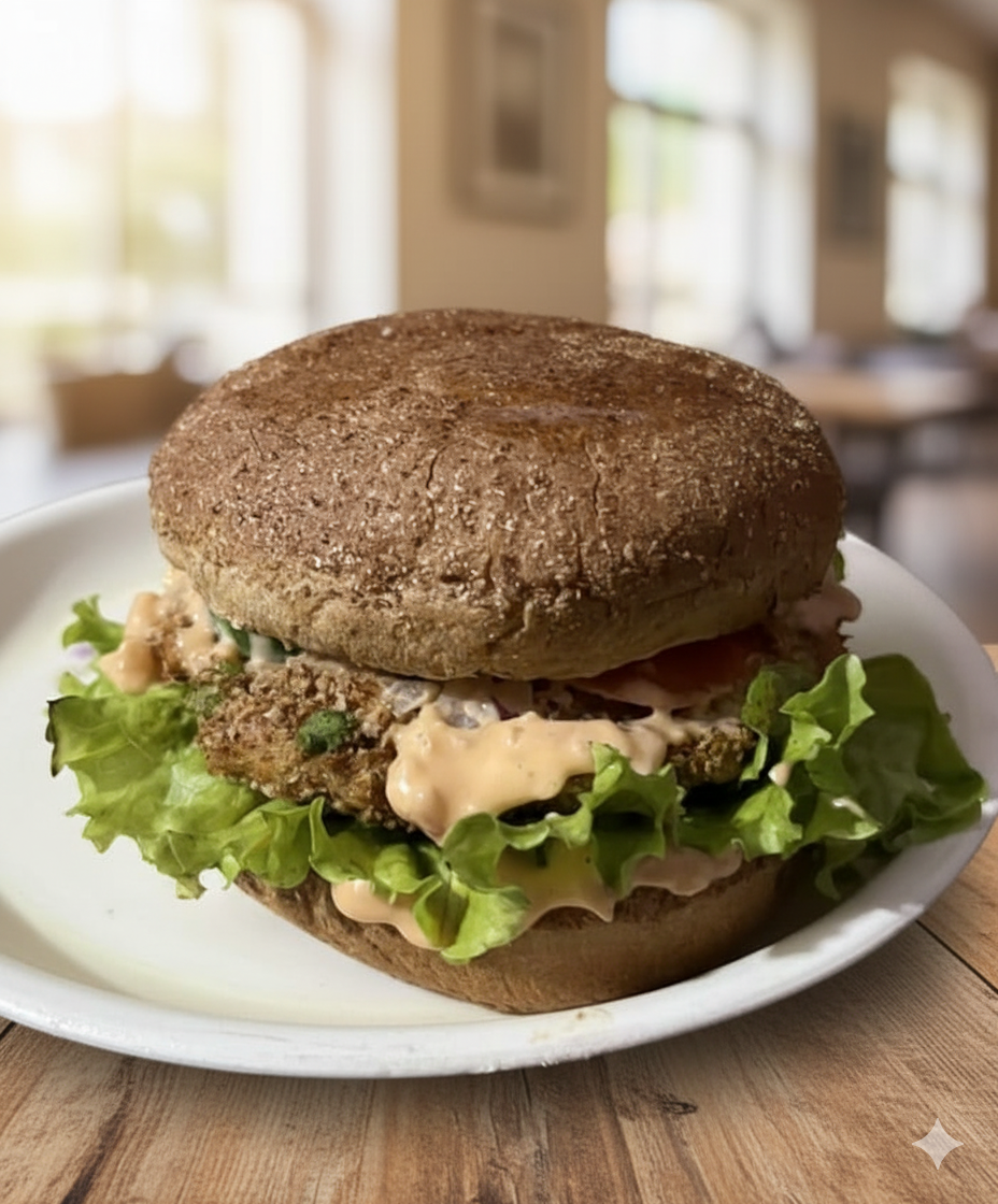 - Crispy, Flavorful Veggie Patty: At the heart of our burger is a perfectly seasoned, golden-brown veggie patty, crafted from a blend of fresh vegetables and spices for a delightful crunch and savory taste. π₯π₯πΏ