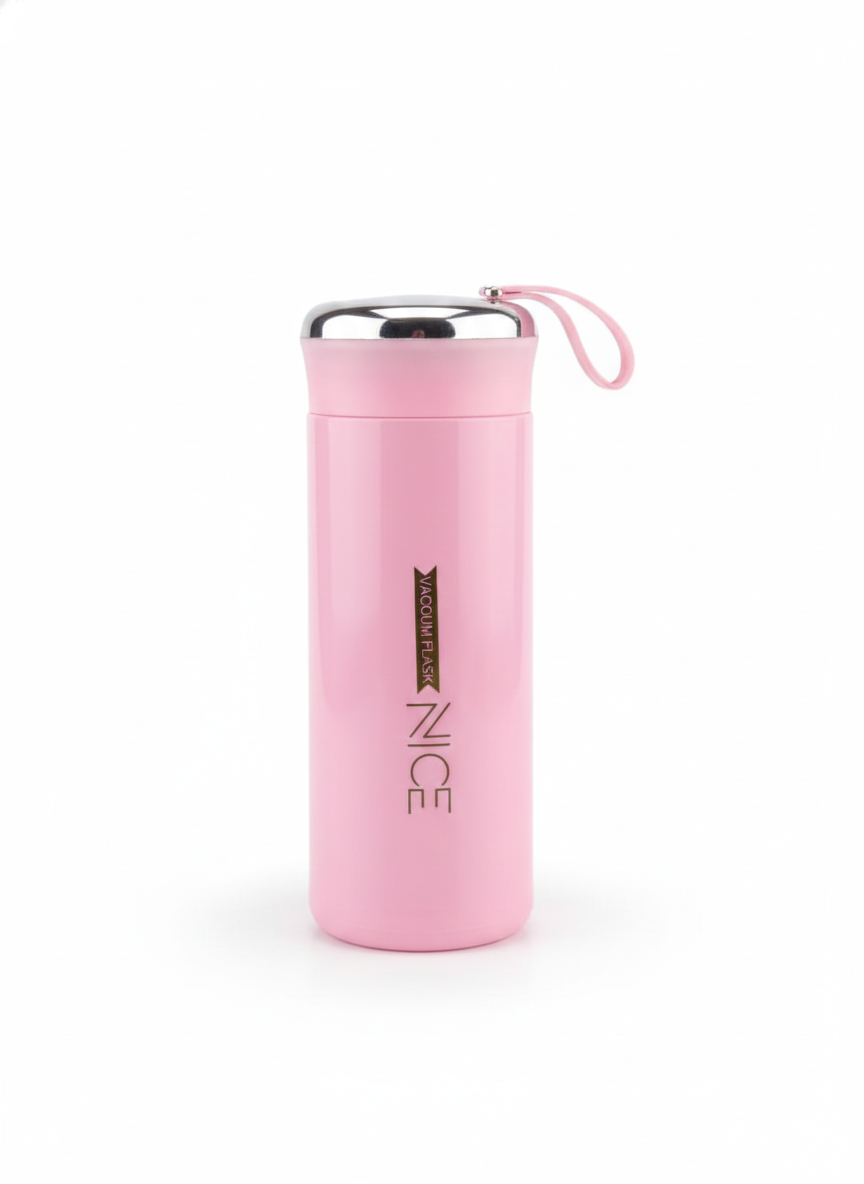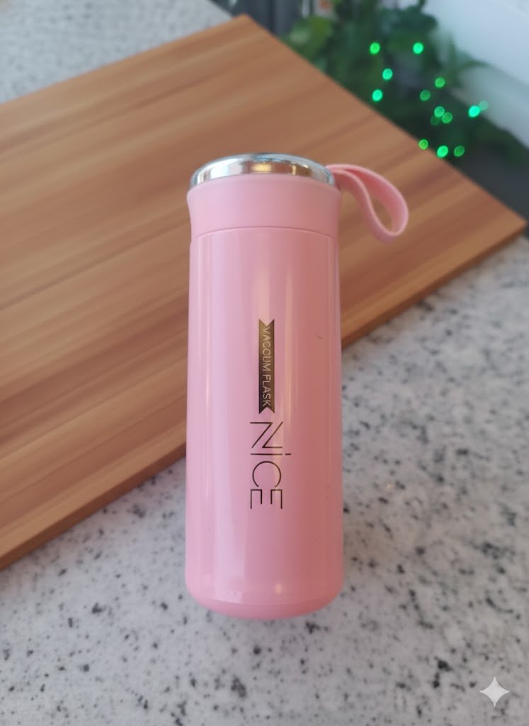 🎨 Elegant Design: A truly eye-catching, smooth, baby-pink vacuum flask with a minimalist “NICE” and “VACUUM FLASK” imprint. Perfect for school, work, or the gym.